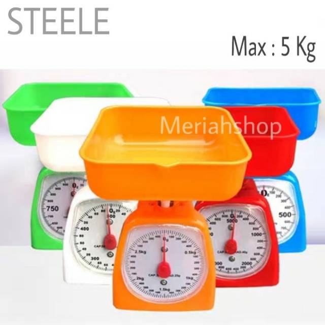 ^^^Garansi : Kembali Barang jika Padam atau Rusak atau Alat tidak berfungsi baik. (1 hari sejak penerimaan barang)^^^ Timbangan Kue / dapur Analog 5 Kilo (Kapasitas maximal 5000 gram)Mudah untuk membaca angka yang ditampilkan pada timbangan skala scale Pengukuran yang cepat , tepat , Akurat & Presisi yang Tinggi disertai Mangkok Segi Empat yang besar lebar.* Bahan: Plastik PP* Kapasitas: 5 kg* Diimport oleh : Steele * Bahan plastik yang tidak mudah pecah.* Angka tercetak tebal dan besar.* Colorful Scale Warna: Merah , Orange , Putih , Biru , Hijausilakan tanyakan stok warna sebelom order , jika tidak ada catatan , berarti dikirim warna Random/acak Ukuran dasar: 12 cm x 12.5 cm/4.72 "x 4.92" (Kira-kira.)Ukuran Tray: 15.5 cm x 15.5 cm/6.1 "x 6.1" (Kira-k