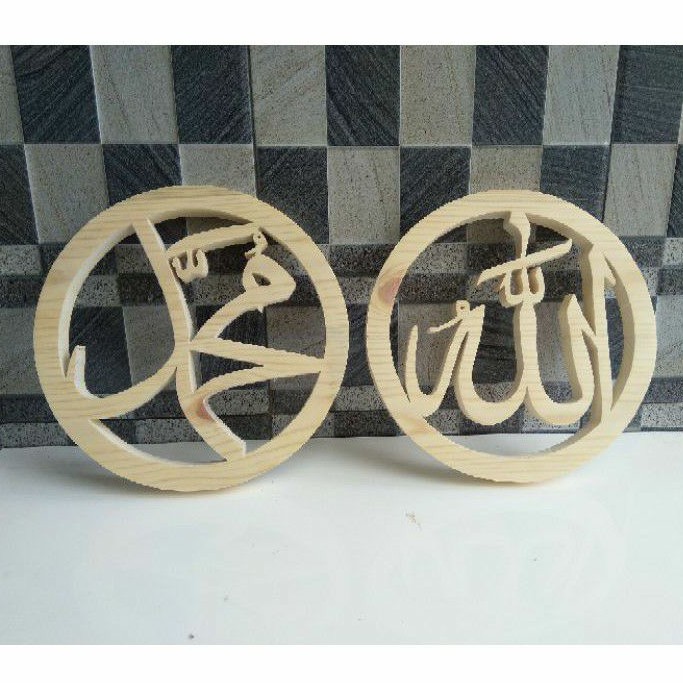 READY :kaligrafri allah muhammadterbuat dari kayu jati belanda NON FINISHINGdiameter 20 cmtebal 1.5 cmHARGA UNTUK 1 kaligrafi bukan 1